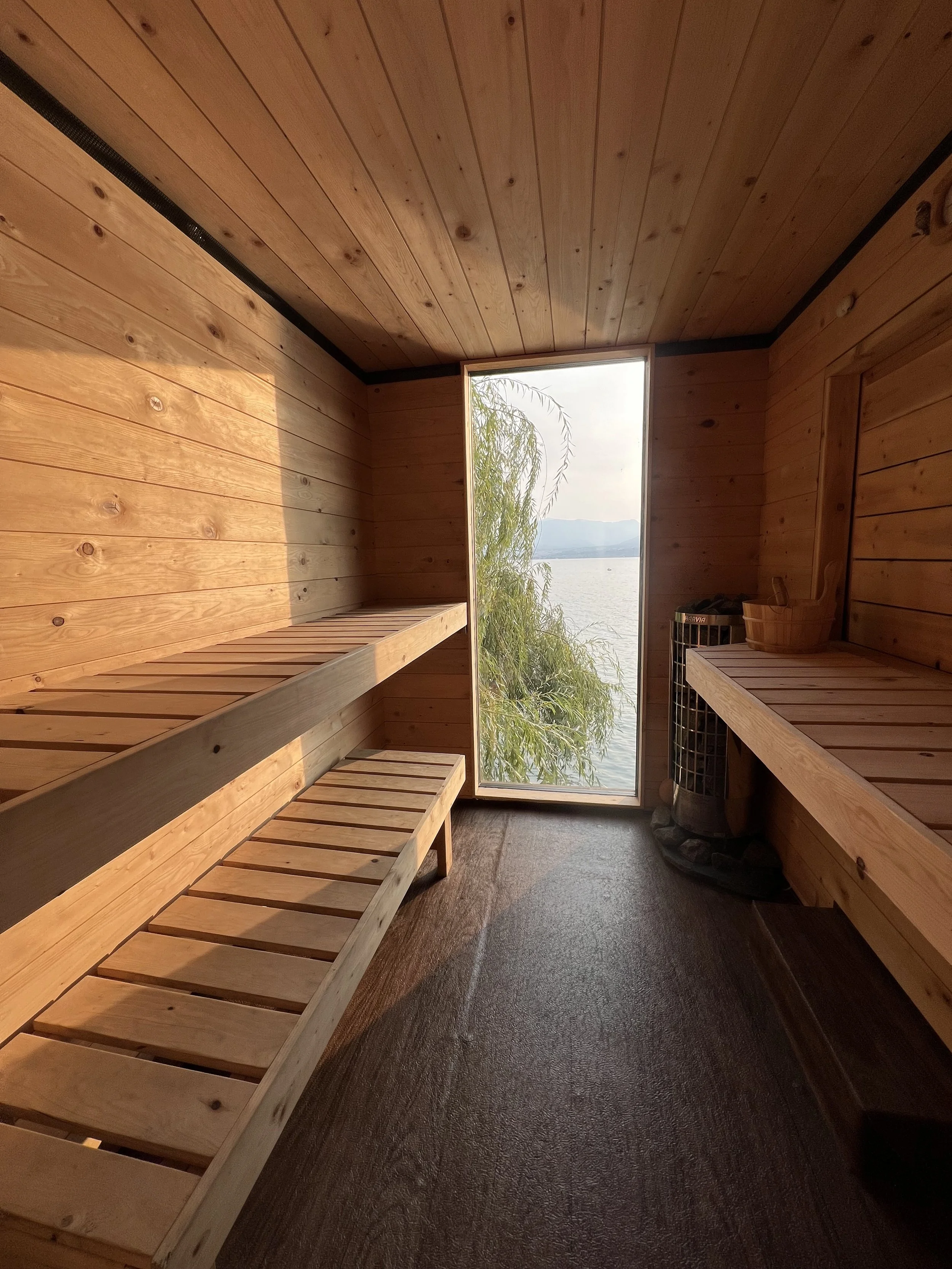 Tucked right on the lake, our sauna is the perfect place to unwind and soak in the beauty of the surroundings. Warm up inside while enjoying peaceful water views through the window, then step outside for a refreshing dip in the lake or simply cool off on the dock. Whether you’re starting your morning with a quiet sweat or ending the day under the stars, the sauna offers a uniquely relaxing lakeside experience.